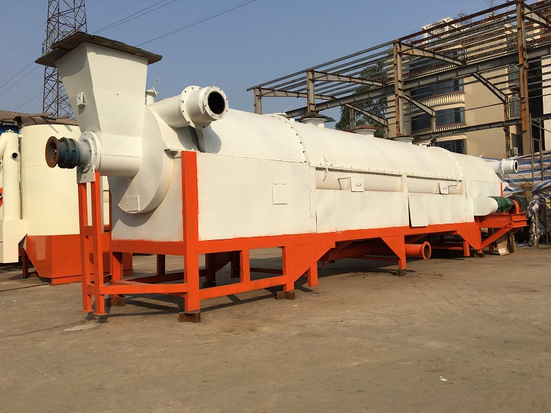 2. 含水量40%左右的原料進入烘干機,干燥后達到水分20%左右,烘干機熱源采用炭化機余熱烘干;